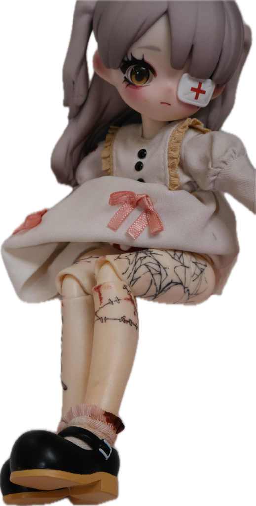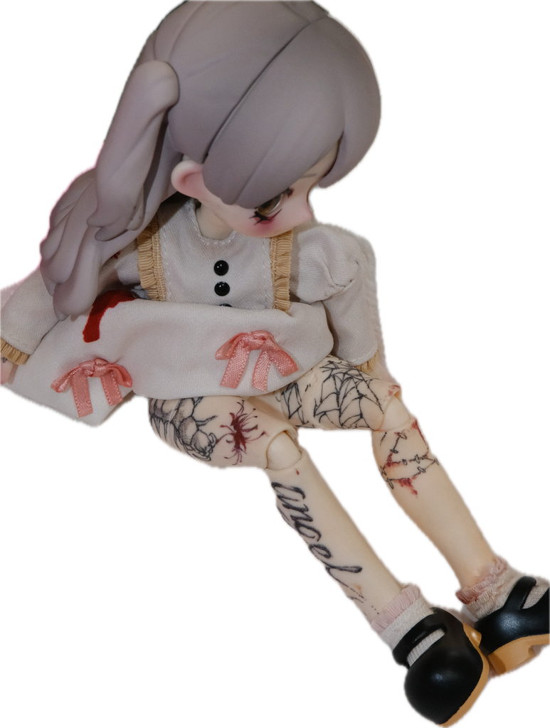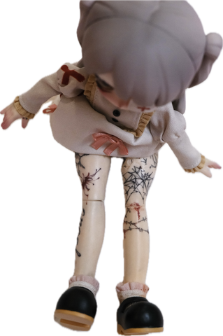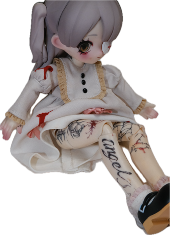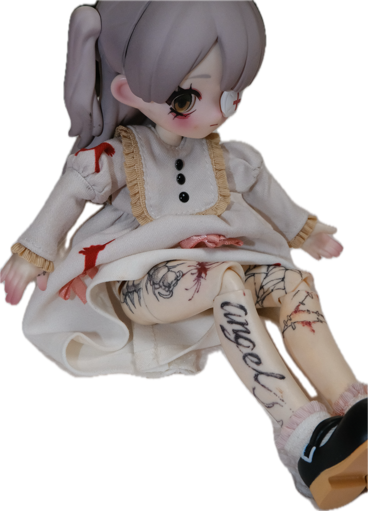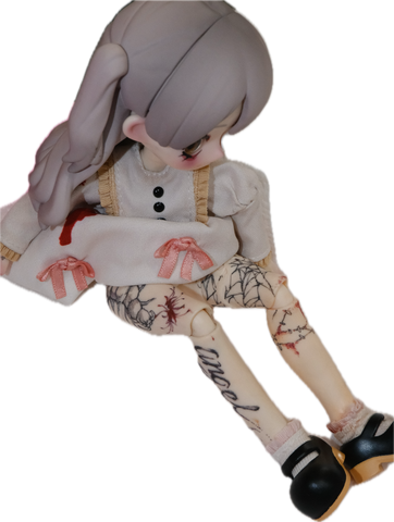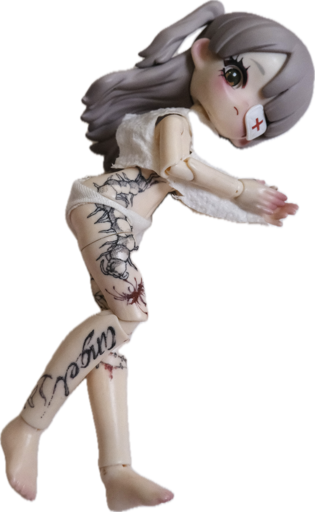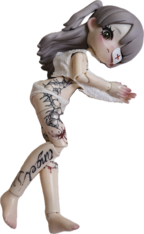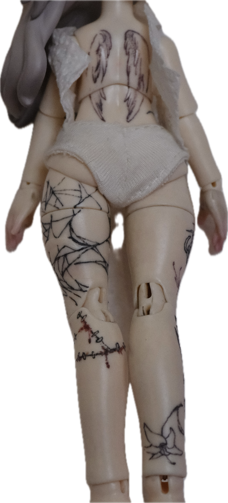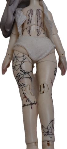 Tattooed Eve Lynna doll with spider web, centipede, and angel tattoos + a lily and spider lily